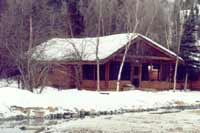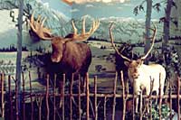 Recently Chena Hot Springs Resort Built a two story hotel pictured in the center frame. The building has a spacious lobby in which you can sit back and take in the local scenery. The rooms are neat and clean and almost all of them offer spectacular views of the countryside around the hot springs. Off to one corner of the lobby is this nature scene that someone painstakingly contructed. Complete with an old time wooden fence and hand painted background this provides the perfect backdrop for taking photos of yourself with some of the local wildlife.Besides the hotel Chena Hot Springs also has a number of bungalows and cabins that they rent on a weekly or monthly basis. Also of which are in easy walking distance of the main lodge, the indoor and outdoor hot springs, their dining facilities and tourist activity center.