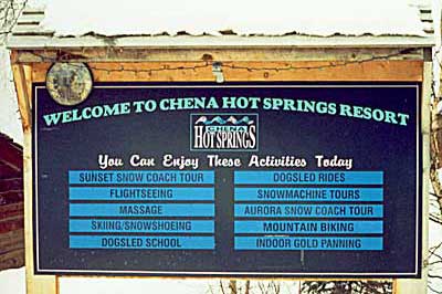 Rather than spending a spending a lot of time trying to describe what all Chena Hot Springs has to offer I thought I'd let you read their sign yourself. Some of the things not mentioned on the sign are snow mobile rental's, four wheeler rentals, horsedrawn sleigh rides, and of course the indoor and outdoor hot springs.