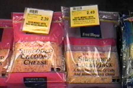 Sargento 8oz shredded cheese | Fred Meyer 12oz shredded cheese | Fred Meyer 8oz shredded cheese |