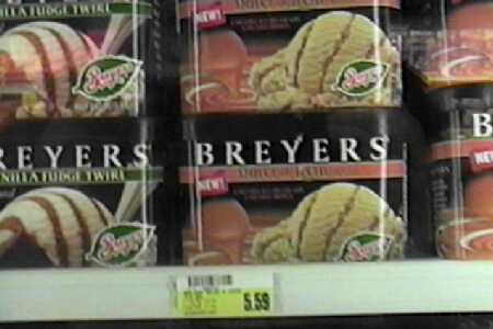 Breyers 1/2 gallon (5.59) | HagenDaz 1 pint (3.57) |
