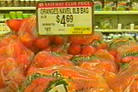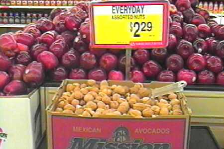 Bags containing 8 lb. of oranges | Mixed nuts (Bg apples 1.99 lb) |