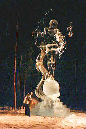 However in the closing hours Junuchi’s efforts are dashed when he is unable to completely flame finish his sculpture. The unfinished ball and base Pandora stands on cost him. and Pandora's Dance receives Third Place.